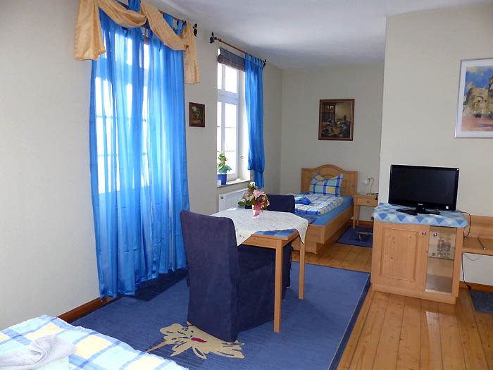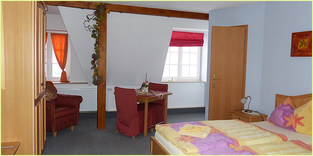 Die Ferienwohnungen verfügen über ein Bad, einen Schlaf- und einen Wohnraum mit kleinem Küchentrakt zur Eigenversorgung. Alle Räumlichkeiten sind liebevoll und komfortabel eingerichtet. SAT/TV ist selbstverständlich. Für alle Zimmer gibt es eine kleine gemeinsame Küchenzeile im Flurbereich.